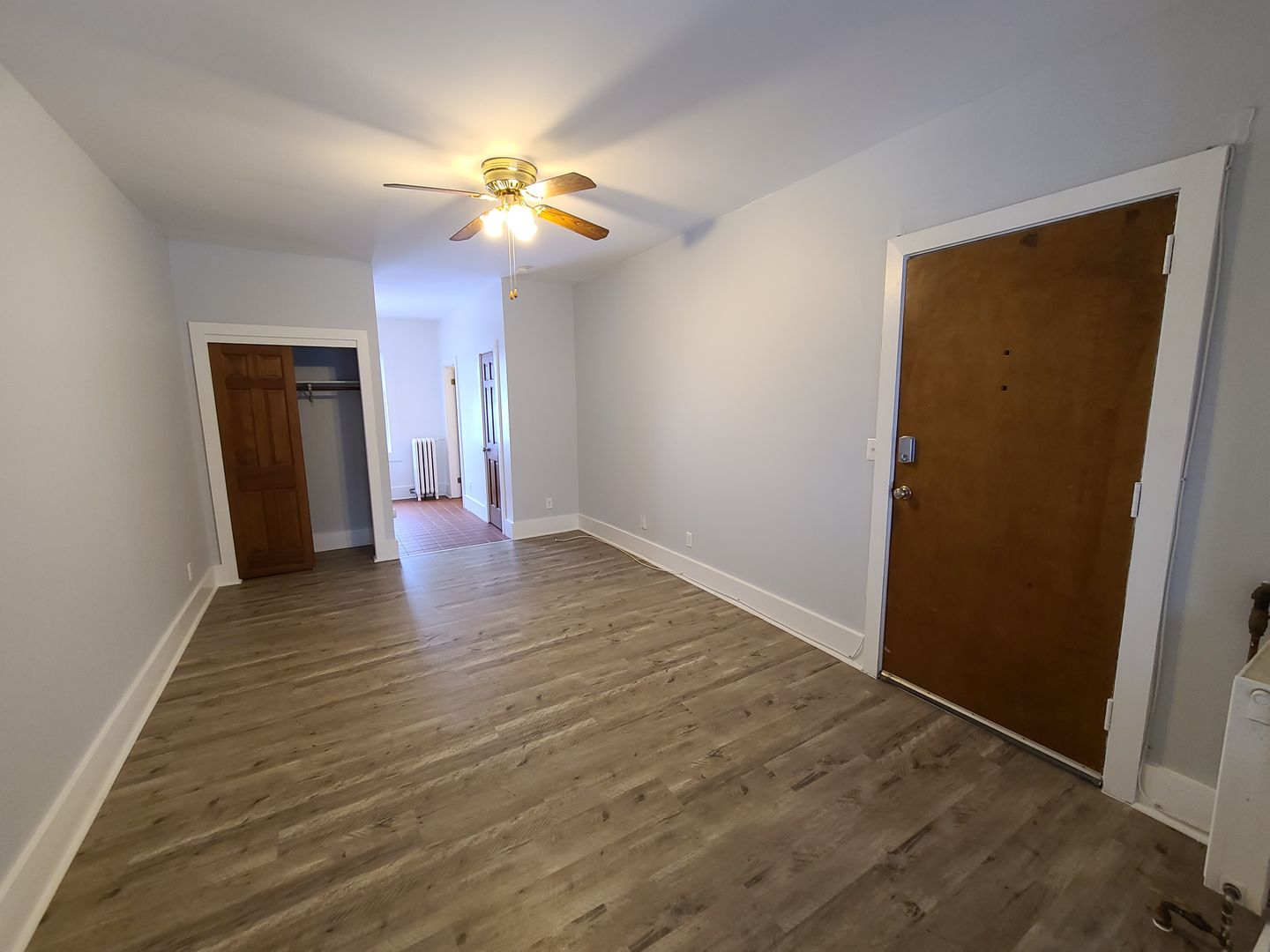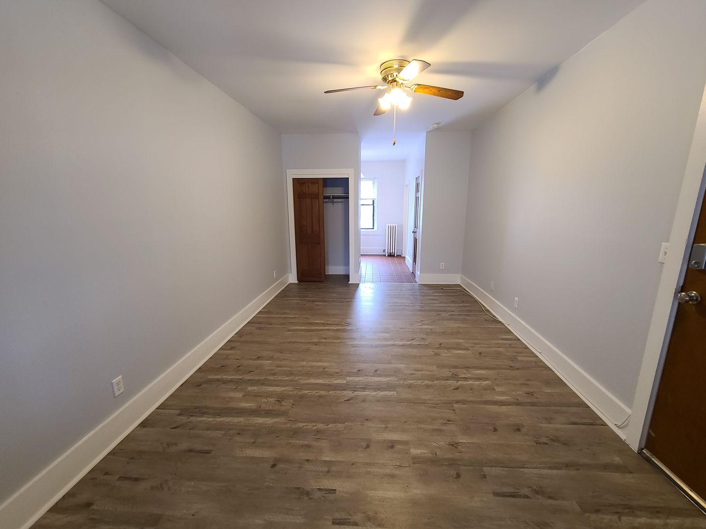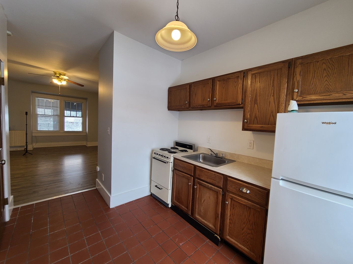 This cozy 2-room studio is located on Park Ave! The kitchen is off of the main living space making the space seem much bigger! The living space has beautiful new flooring, a closet, and a ceiling fan. Fresh paint throughout. There are parking spaces available at a small additional cost. Nearby food and entertainment include Stever's Candies, Maxim Spa & Salon, Blu Wolf Bistro, and so much more!