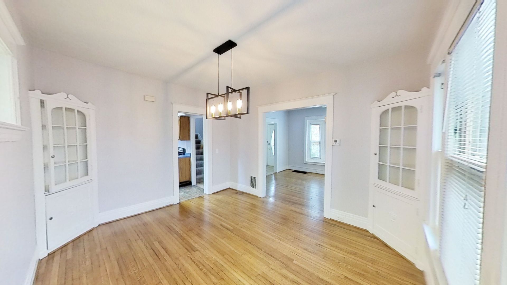 This 3-bedroom single-family home is located off Monroe Ave in a small, intimate neighborhood filled with beautiful flowers and gardens! It features a large living room and dining room with built-in curio cabinets with tons of natural light from the large windows. The dining area shows a brand-new, modern-style chandelier! Gleaming hardwood floors have been refinished, and brand new carpet was just installed on the stairs leading to the second floor, the second-floor hallway, as well as the bedrooms! Fresh paint throughout the entire home. This home has a private front porch, front and side door entrances, and a small private driveway.