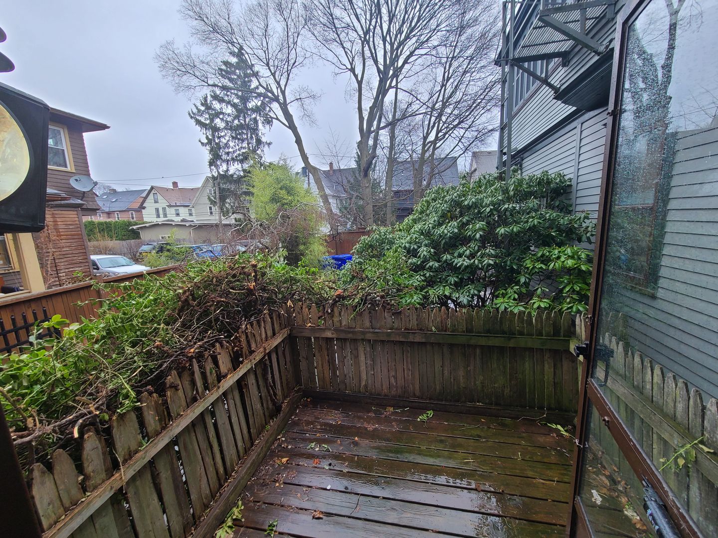 This lovely office space OR room for rent is located in a beautiful neighborhood! It features hardwood floors, built-in shelving, a private deck, and a private half-bathroom. As a room/office for rent- a refrigerator and full bath will be shared.