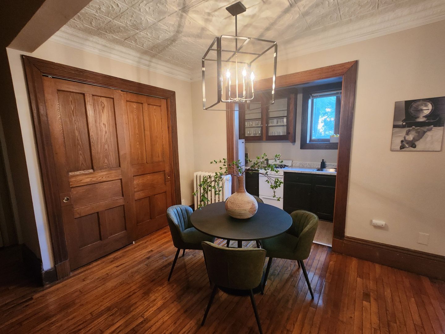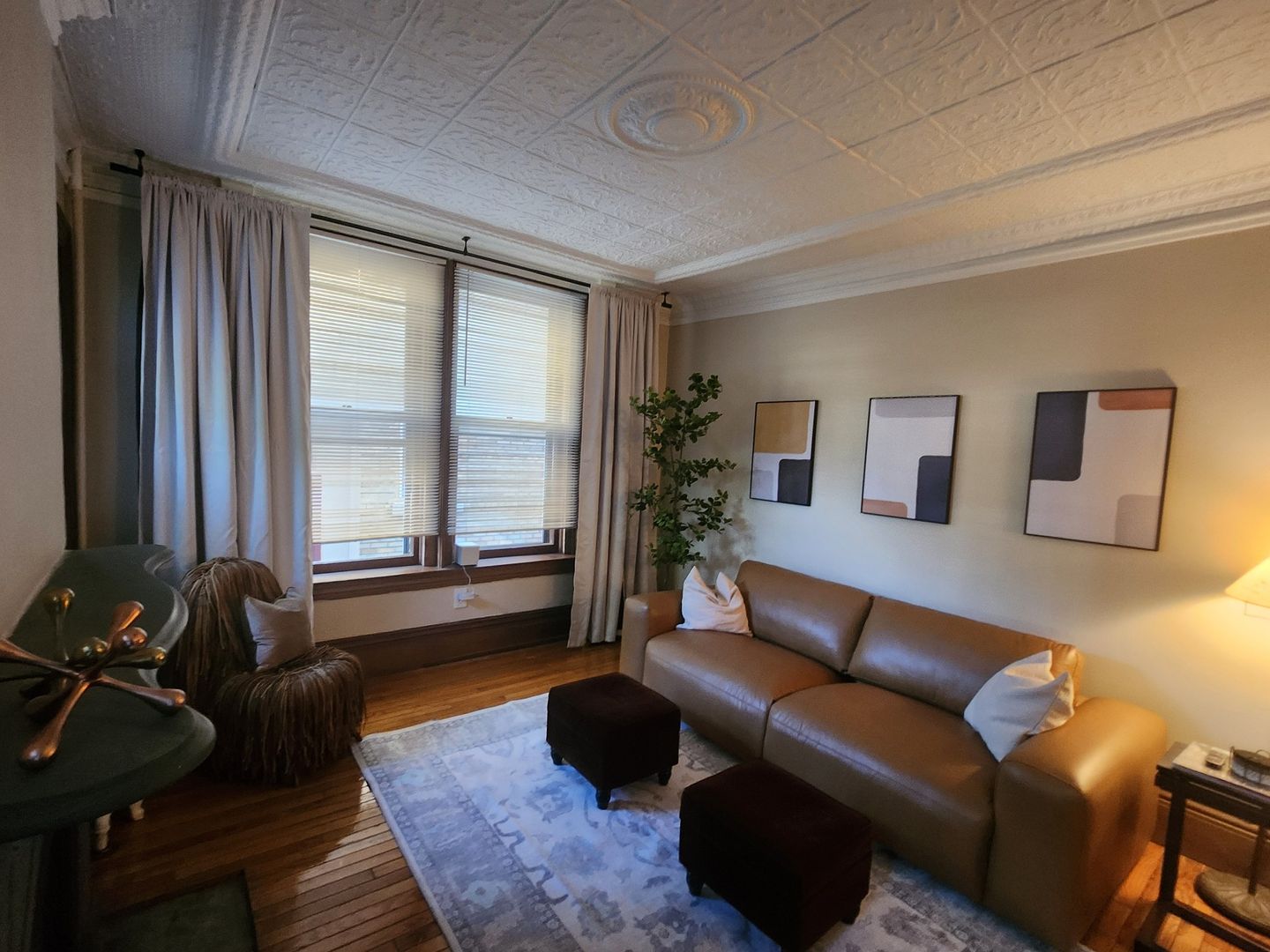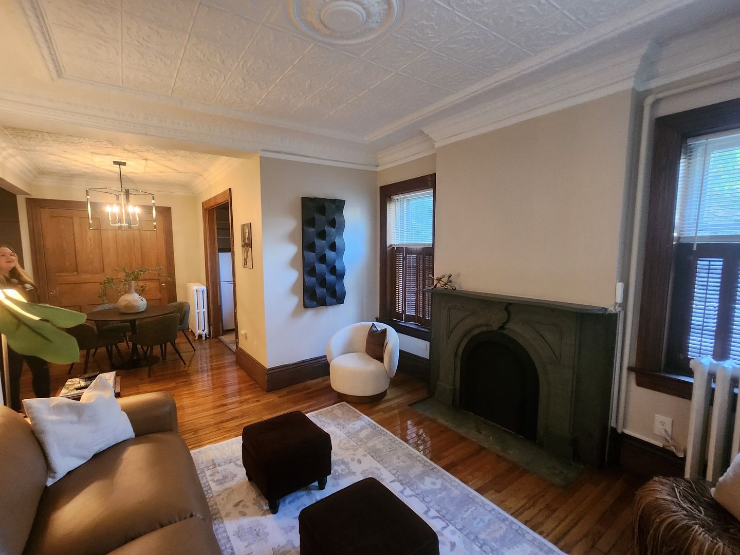 Discover this spacious 1-bedroom apartment, ideally situated in a vibrant neighborhood with everything you need at your doorstep. Boasting beautiful hardwood floors throughout, this unit offers a bright and airy living room, highlighted by four large windows that flood the space with natural light. The living area also features a decorative fireplace and an eye-catching exposed brick wall that adds a touch of character.