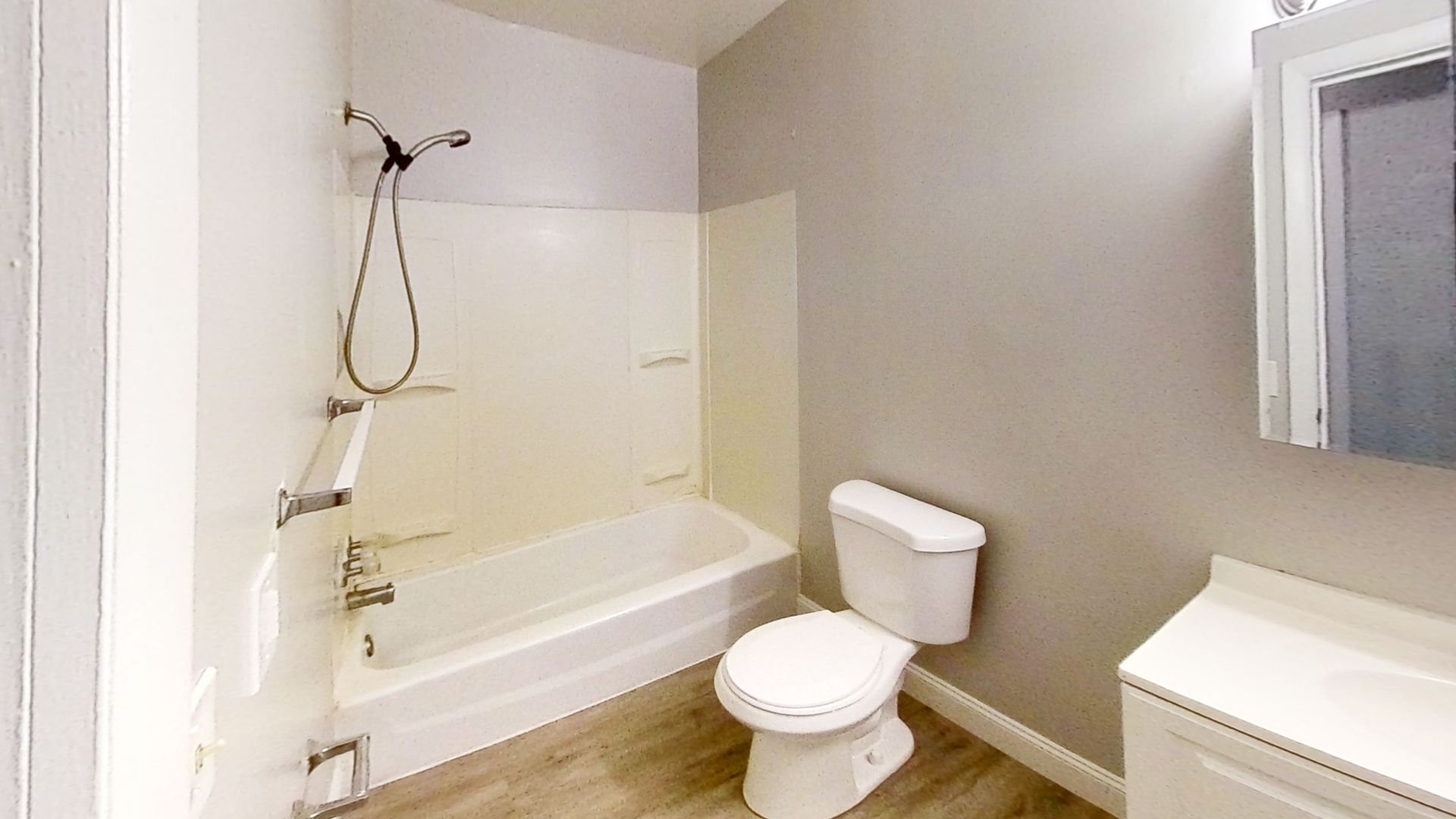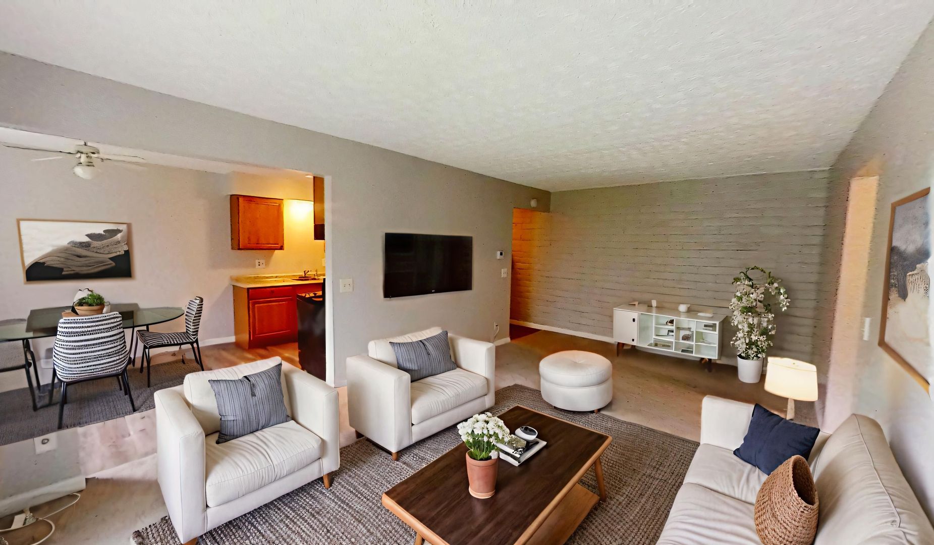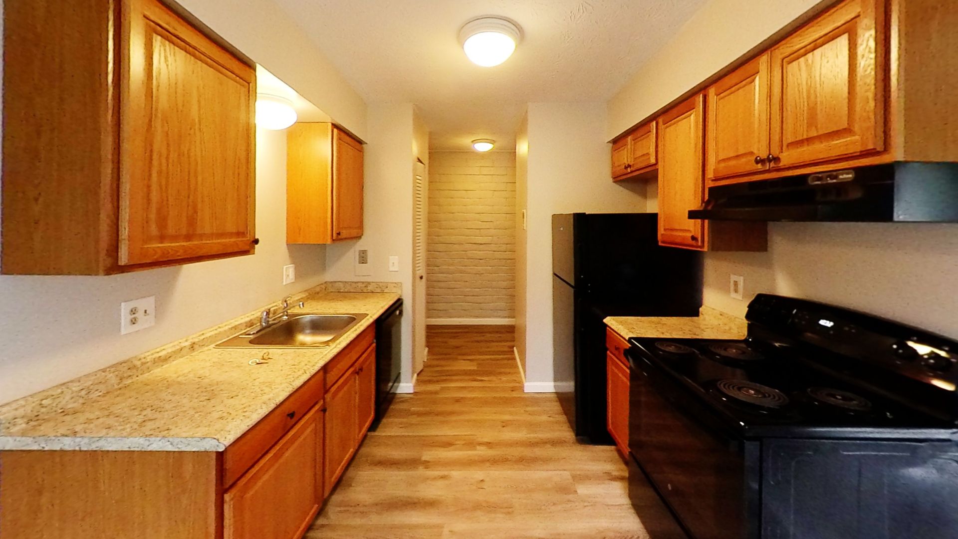This is a beautiful freshly renovated two-bedroom apartment. The living room is very spacious with gorgeous wood-style floors and features a brick accent wall and a ceiling fan! The kitchen has an area that would be perfect for an eating area. This apartment has ample space, large sliding doors, and a patio located in a quiet and park-like setting making the apartment a perfect getaway from your day-to-day.