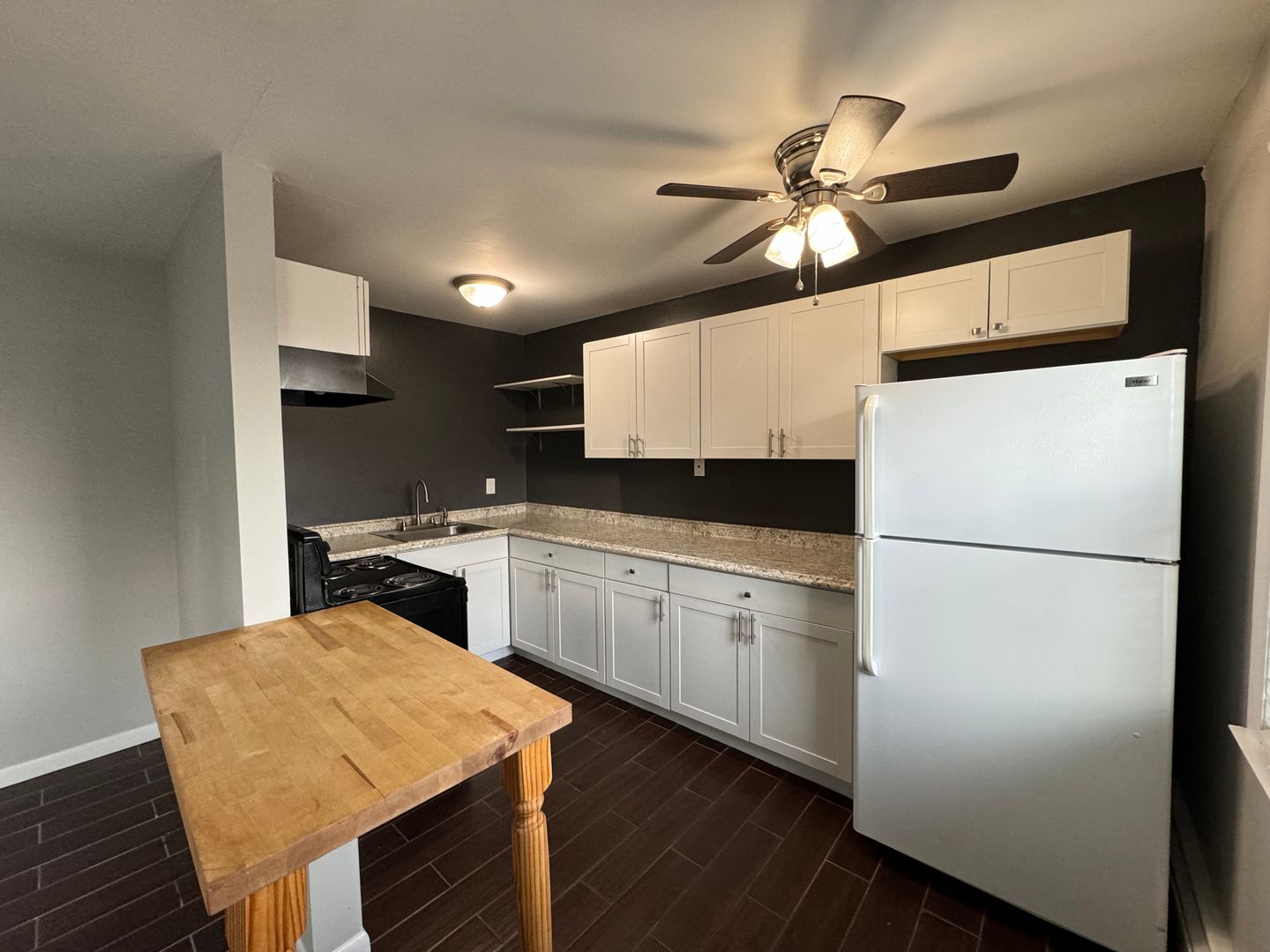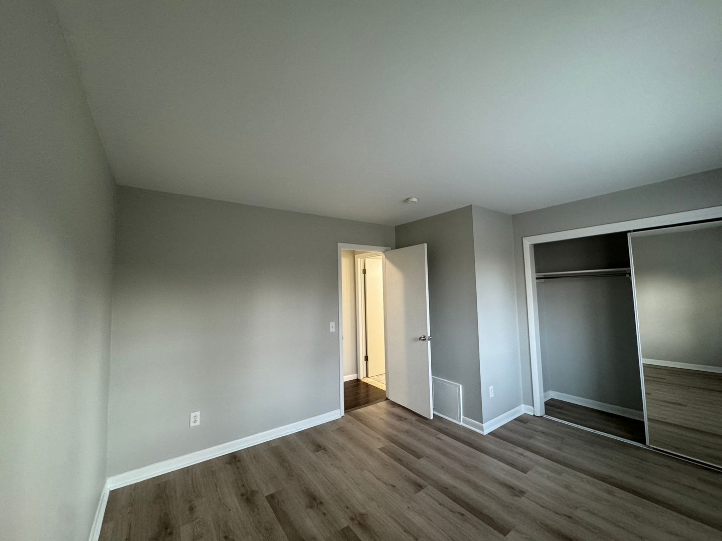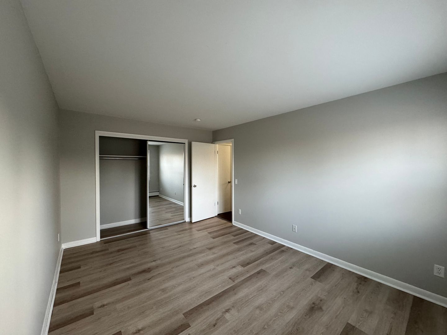 This 2 bedroom, 1 bathroom apartment is modern and spacious! There's a cozy area off of the kitchen for a dining space. There are two hallway closets, one of which contains shelving as a great linen closet. Both bedrooms are large and there are blinds on every window in the apartment. The door lock is a secured Key Pad!